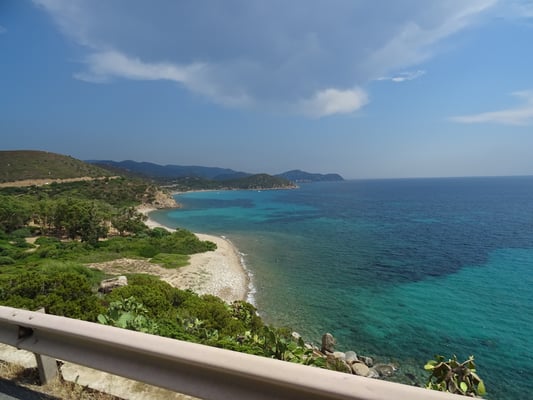 Um 11.00 Uhr, es ist schon wieder heiss, fahren wir direkt weiter nach Cagliari, die zweitgrösste Stadt Sadiniens. Wir finden kurzerhand einen Parkplatz beim Quartier des Castello und schlendern durch die engen Gassen der schönen Stadt. Sehen die Einflüsse der Mauren, Spanier und Italiener und kehren im Matrosenviertel in ein Restaurant ein, wo wir ein typisches Meermenü mit Primo und Secondo Piatto geniessen. Gesättigt und zufrieden schlendern wir durch weitere Gassen wieder zum Auto und fahren über Quartu Sant'Elena bis nach Villasimius.