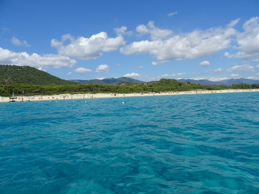 Wir verlassen den Campingplatz früh, wollten eigentlich noch die Karibische Bucht Spiaggia Giunco besichtigen, doch wir wollen kein Parkbillett bezahlen nur um zu schauen. So fahren wir entlang der Küste mit teilweise spektakulären Aussichten auf Klippen und Insel nur wenig weiter um schon am Vormittag an der Cala Sinzias zu baden. Eine super tolle Bucht mit feinstem Sand und leicht abfallendem Wasser. Wir baden bis um zwei an diesem herrlichen Ort und mieten ein Pedalo für eine Stunde. Es hatte zwar Wellen, aber der Spass war perfekt, denn unser Pedalo hatte eine Rutschbahn. In Costa Rei angekommen, die Jungs machten gerade ihren Mittagsschlaf im Auto, war natürlich gerade Siesta auf dem Camping Capo Ferrato. So gönnten wir uns ein Glace in einer Bar im Ferienort und ein feines Ichnusa Radler. Der Ort scheint gemütlich und etwasLaid back zu sein.