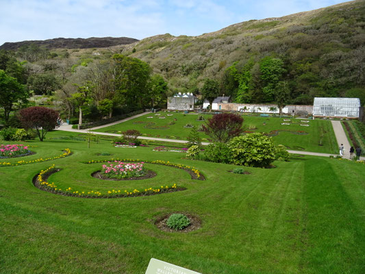 Wir gehen rein und schlendern durch den schönen èark besichtigen das Schloss und staunen nicht schlecht über die tragische Liebesgeschichte von Mitchel Henry errichtete das Gebäude 1857 mit grossem Aufwand und lebte da mit seiner Frau Margareth. Es wurden viele Gäste eingeladen und der grosse Garten hatte alles, was man sich auf den Teller wünschte, sogar ein Bananentreibhaus.