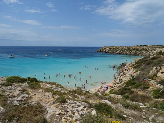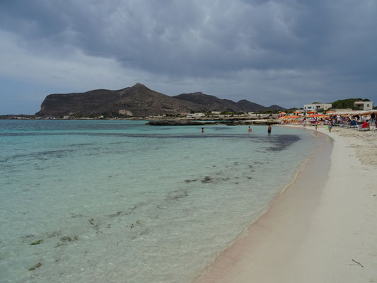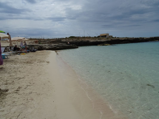 Wir schwingen uns auf die Räder und radeln auf der Insel herum. Kreuz und quer, denn die Beschilderungen zeigen immer wieder in andere Richtungen. Wir sehen die Cala Azzurra und finden endlich das Lido Burrone. Das Strändchen ist nicht mit denen von Sardinien zu vergleichen und dann zieht auch noch ein Gewitter auf und erste Regentropfen fallen.