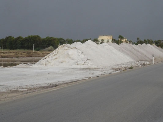 Die Fährenüberfahrt dauert wieder eine gute Stunde und wir sind erst um 18 Uhr wieder in Trápani. In jeder Himmelsrichtung bauen sich Gewitter auf. Wir fahren an den Salinen und Windmühlen vorbei Richtung Marsala. Das Navi lotst uns direkt ins Centro und in den Abendverkehr.