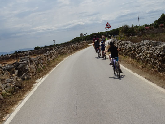Das Velofahren auf Favignana macht richtig Spass, denn es hat nur ganz wenige Autos, viele andere Fahrradfahrer und nur flaches Gelände. Es ist heute nicht zu heiss und man sieht so viel von der kargen Landschaft.