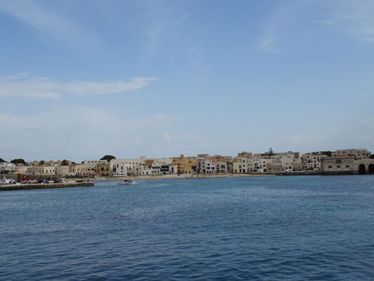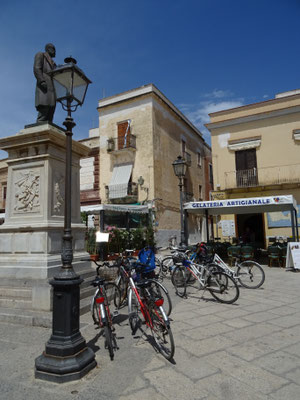 Auf dem Camping nehmen wir die saubere, trockene Wäsche ab und packen unseren Bus. Wenig später spazieren wir durch das Städtchen Favignana. Auch hier nur Velofahrer.