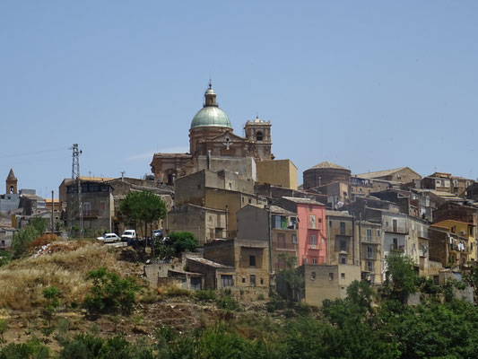 Vorbei an endlos scheinenden Kornfeldern erreichen wir nach knapp 50 km Caltanissetta. Hier wurden bis im 19. Jh. 80 % des Schwefelbedarfs der Welt abgebaut. Heute leben die Leute vom Anbau von Weizen, Artischocken, Mandeln und Oliven. Der Ort hat aber sonst nichts zu bieten, daher fahren wir direkt weiter bis nach Énna.