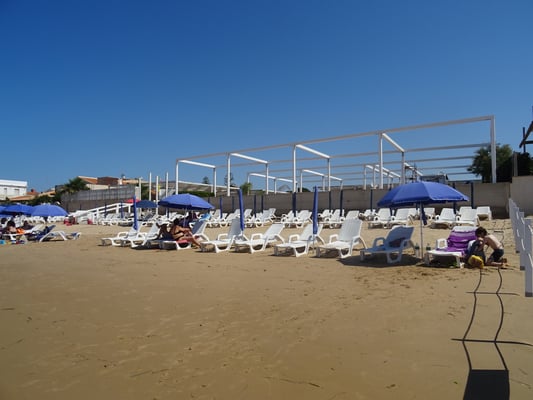 Diesen Platz würden wir weiterempfehlen!!! 25 Euro für Platz mit Strom, Warmwasserdusche, eigenes abschliessbares WC, Schirm und Liegestuhl am Strand. ***** von uns!