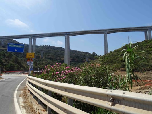 Es gibt nicht viele Orte unterwegs, aber imposant sind jedes Mal die Brücken der Autobahn. Schnurgerade fährt sie durch die hügelige Landschaft und verschwindet immer wider in Tunnels.