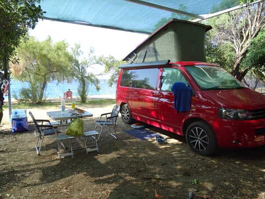 Pünktlich zum Ende der Siesta (16.00 Uhr) treffen wir dann im Camping Calanovella in Piráino ein. Es stellt sich heraus, dass es ein Platz mit Ferienvillage und Animazione ist.