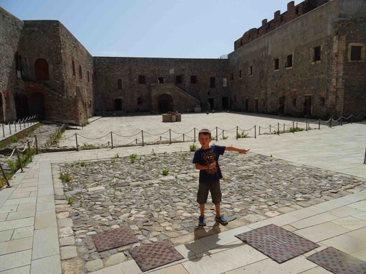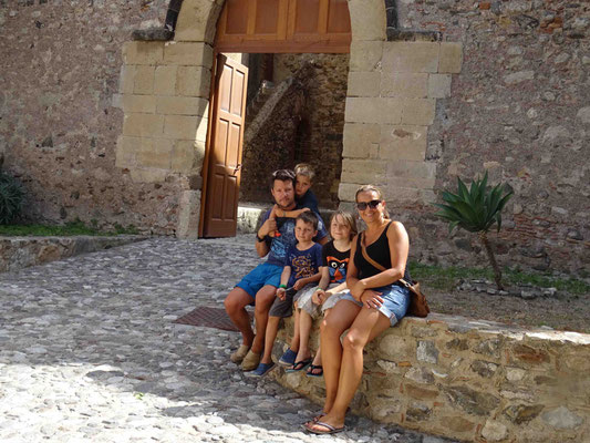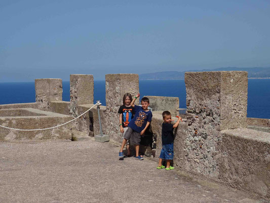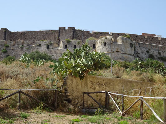 Gesättigt und mit Vino di Casa im Blut müsste man eigentlich nun eine Siesta einlegen. Wir aber besichtigen noch das Kastell. Es ist eine riesige Burganlage mit Kathedrale und Burg. Viele Teile sind schön renoviert und vom Burgturm hat man einen fantastischen Blick an die Küste und auf die Halbinsel.