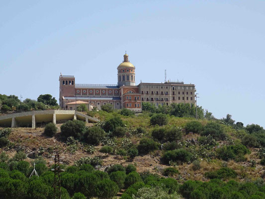 Unsere heutige und fast letzte Strecke in Sizilien geht von Gioiosa Marea über Patti nach Tindari. Wir fahren auf den Parkplatz des Santuario di Tindari. Als wir sehen, was für ein Touristenauflauf das wieder ist, lassen wir die Kirche links liegen und fahren weiter nach Olivieri. Aus der Höhe betrachten wir die schönen Strände.