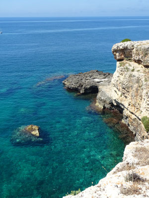 Wir fahren an der Küste weiter bis Otranto. Dieser Küstenabschnitt gilt zu den spektakulärsten Abschnitten der Küste Apulien. Wir fahren gemütlich und staunen über die steilen Hänge, die türkisblauen Buchten, die abgebrannten Stellen und die netten Dörfchen.