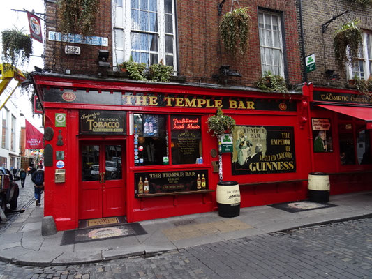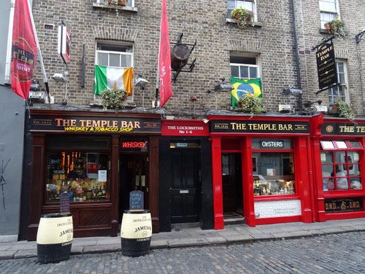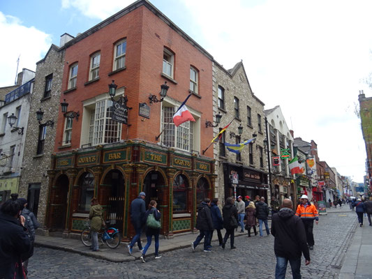 Nach schlendern wir über eine der Fussgängerbrücken nach Temple Bar, bestaunen da die vielen bunten Pubs. Sehr touristisch!