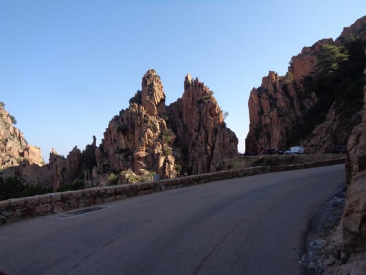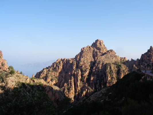 Den wilden Camping am Plage d'Arone verlassen wir früh. Wir freuen uns darauf, nochmals die enge Strasse durch den NP der Calanche zu fahren.