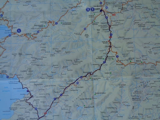 Wir kühlen im kalten Bergbach ab und kehren zurück zum Auto. Kurz danach ist der Col de Vizzavona erreicht. Hier trennt sich das feudale Südkorsika (jenseits der Berge-Corse-du-Sud) vom weniger Adelsintrigen bestimmten Nordkorsika (diesseits der Berge-Haute-Corse). Den Unterschied merkt man bereits beim Hinabfahren. Die Strasse ist noch breiter ausgebaut und alles wirkt etwas weniger wild.