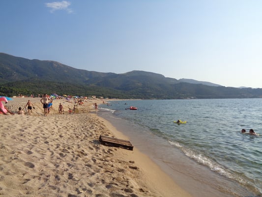 Bald ist die Industrie und das Aussengebiet von Ajaccio erreicht, der Verkehr nimmt zu und es ist heiss. Wir zweigen etwas vorher ab Richtung Afa, denn wir wollen zum Golf und zum Strand von La Liscia. Leider hat der Camping A Marina direkt am Strand gar keinen Platz mehr frei. Und wir fahren etwas frustriert weiter nordwärts entlang des Golfe de Sagone, in der Hoffnung hier an einem der Sandstrände einen Camping zu finden.