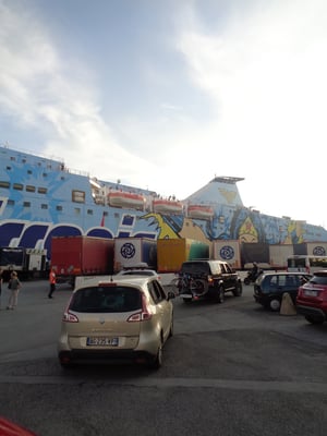 Nach einem Kaffee stehen wir bei der Fähre an. Alles läuft pünktlich ab.