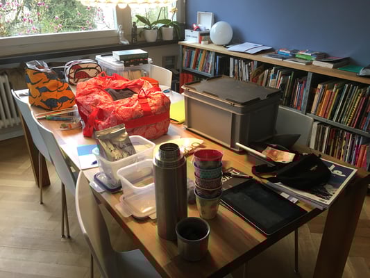 Da wir kühle Nächte und auch Wind erwarten, haben wir uns für Daunendecken entschieden. Auch bei den Kleidern kommen einige Stücke mehr dazu, als wenn man im Sommer im Süden unterwegs ist. Allein die Schuhtasche für fünf Personen ist etwas grösserer Dimension.