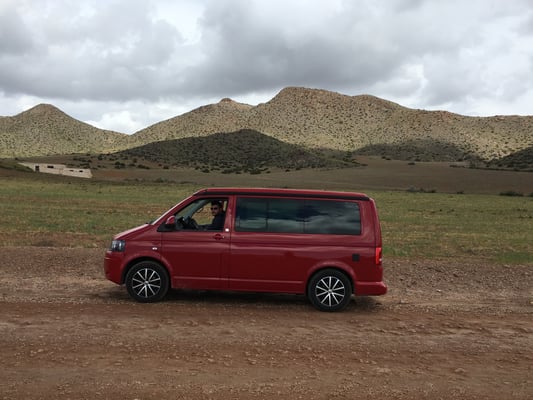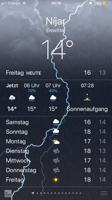 Alle standen im Bus-Bett als um 4 Uhr aus heiterem Himmel zeitgleich Blitz und Donner die Nacht erhellte und das Auto schüttelte. Natürlich folgte heftiger Regen mit dem Gewitter.