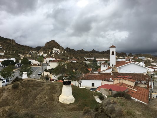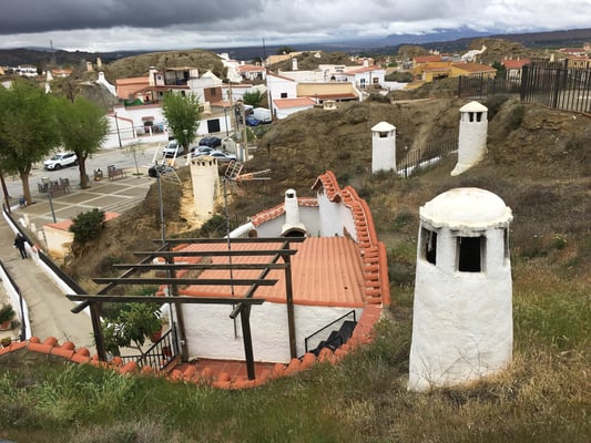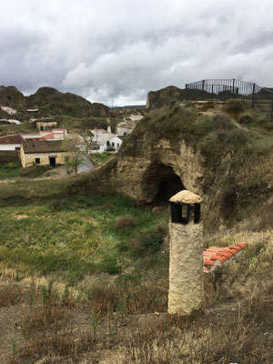 Die heute noch bewohnten Höhlenwohnungen in Guadix sind einen Stopp wert. Die Häuser haben normale Fassaden, viele Räume sind aber in den Kalkfelsen gebaut worden. Ein netter Mann zeigt uns sein Haus von innen und verkauft uns noch einen Honig. Am eindrücklichsten sind die Kamine, welche alle irgendwo aus einem Erdhügel ragen. Guadix erinnert etwas an den Bryce-Cannyon in den USA.