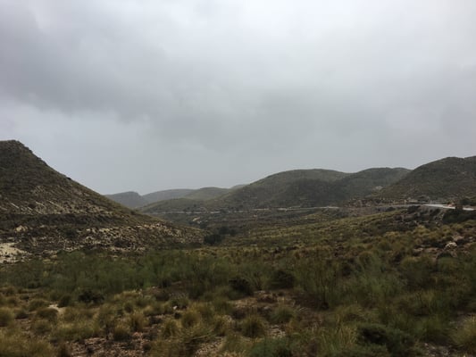 Wunderbar geschlafen trotz Regen! Wir packen unsere sieben Sachen zusammen und machen uns auf den Weg nach Nijar. Von da aus tauchen wir in eine spektakuläre Wüsten-Landschaft ein und nur hie und da erscheinen einige weisse cortijos (Landhöfe). Die Strasse kurvt bis nach Lucainea einsam und verlassen durch die Hügel.