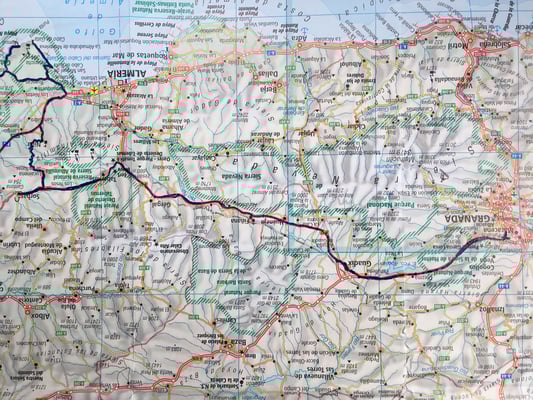 Auch die Strecke zwischen Guadix und Granada ist schön, die ersten Bäume säumen den Strassenrand und die Strasse führt über einen Pass (ca. 1300 m.ü.M.). In Peligros richten wir uns auf dem terrassierten Camping Granada ein. Wir haben Blick auf Granada und geniessen den Abend.