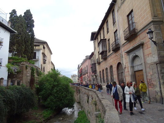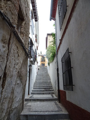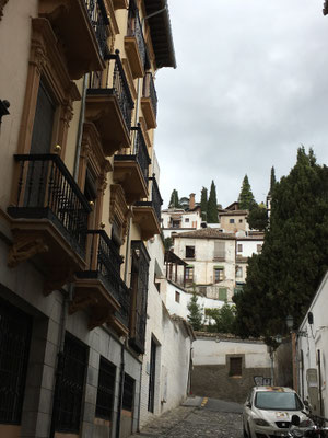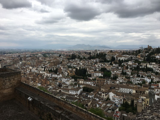Wir nehmen den Weg zwischen Alhambra und Generalife runter zum Fluss Darro und schlendern noch durch die Gassen Albaicin (dem Zigeunerviertel) bis hoch zum Mirador San Nicolás, von wo aus man einen wunderbaren Blick zurück auf die Alhambra hat.