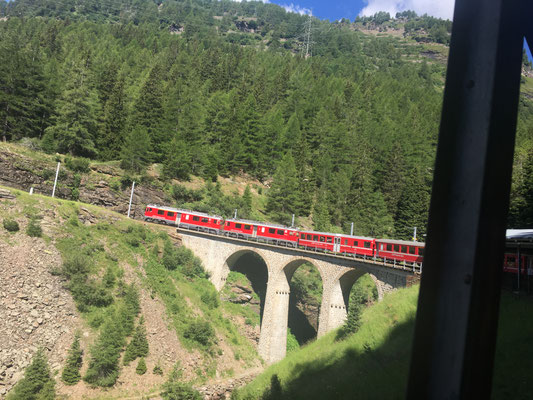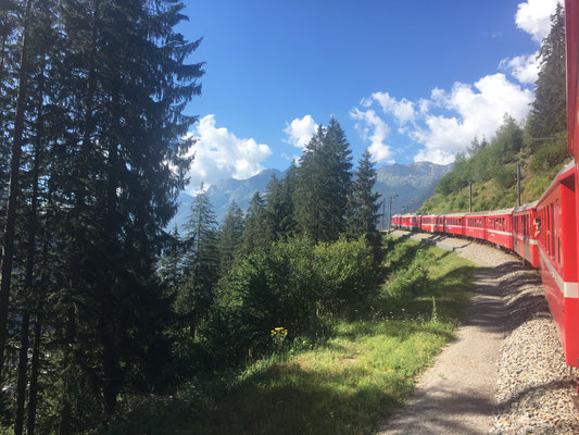 Die beeindruckende Zugfahrt mit offenem Fenster durch die Kehrtunnels rundet diesen wunderbaren Tag in der Bündner Bergwelt ab.