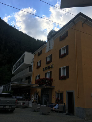 Am Abend treffen wir unsere Freunde in Le Prese um in der Pizzeria im Hotel Raselli zu essen. Empfehlenswert und fein! Mit den Bikes fahren wir zurück nach Li Curt auf den Camping.