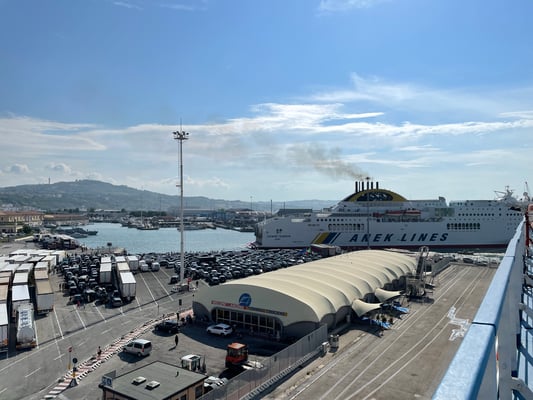 Ungefähr 20 km vor Ancona fahren wir ans Meer vor und halten am Lungomare an. Die Füsse vertreten und ins Wasser halten, bevor wir beim Fährenterminal ankommen.