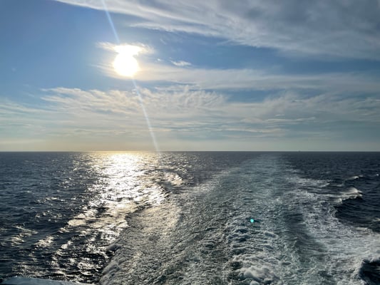 Kurz danach stellen wir uns in die Kolonne und warten auf die Einfahrt. Die Jungs und ich, dürfen bereits an Board und wir erkunden das Schiff. Lars steht mit dem Auto noch gute 1.5 Stunden vor der Fähre. Er fährt als eines der letzten Autos an Board.