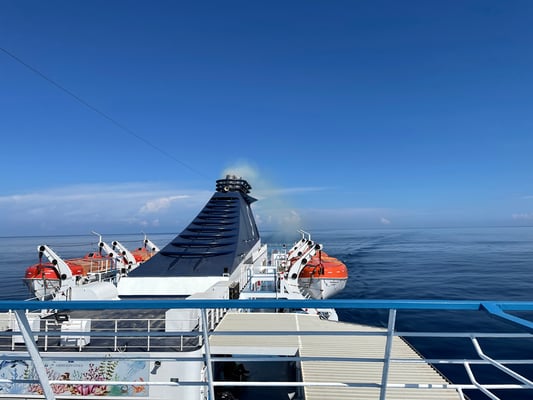 Um 16 Uhr legt das Schiff an und es dauert eine gefühlte Ewigkeit, bis wir aus der Garage fahren können. Es ist eng.