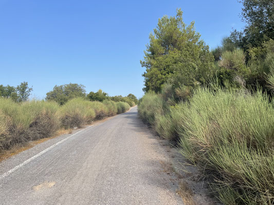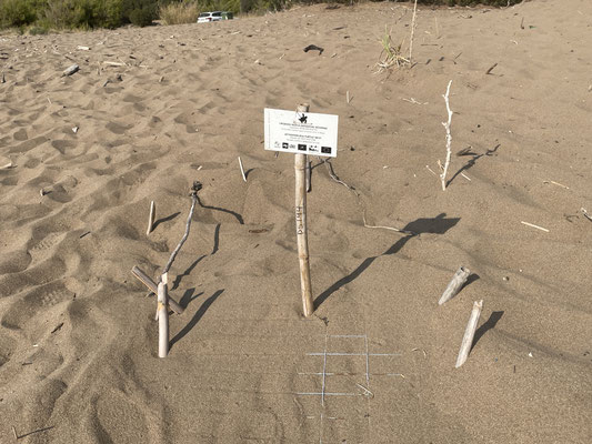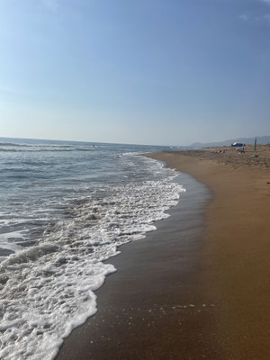 Wieder im Auto schlängeln wir uns durch viele weitere Kurven und viele weitere Kilometer schlechte und enge Strassen bis nach Andritsena. Hier hat man zum ersten Mal das Gefühl wieder etwas in der Zivilisation zu sein. Eine Stunde später treffen wir in Tholo am Meer auf dem Camping Apollo Village ein. Ein grosser, schöner, aber in die Jahre gekommener Campingplatz. Wir suchen uns ein Plätzchen aus und gehen zum Strand. Der Strand ist leer und es sind viele Meeresschildkröten-Nester markiert. Der lange Strand ist bekannt für die Nistplätze der Schildkröten und wird von Volontären allmorgendlich überwacht.