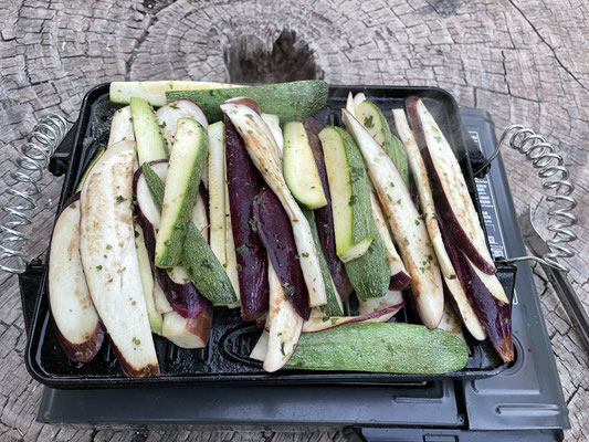 Wir füllen die 80 l Diesel wieder auf, kaufen frische Früchte und Gemüse ein und gehen zurück auf den Campingplatz, wo wir uns einen Apéro genehmigen und danach das frische Gemüse kochen. Von hier sollen die besten Auberginen kommen!
