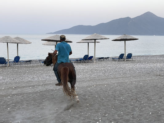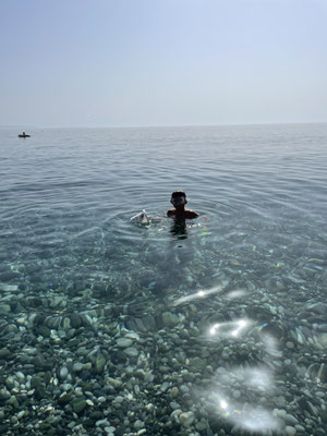 Wir bleiben heute auf dem Camping Semeli und verbringen den Vormittag am Strand. Es ist schön hier, ruhig und sauber und angenehm.