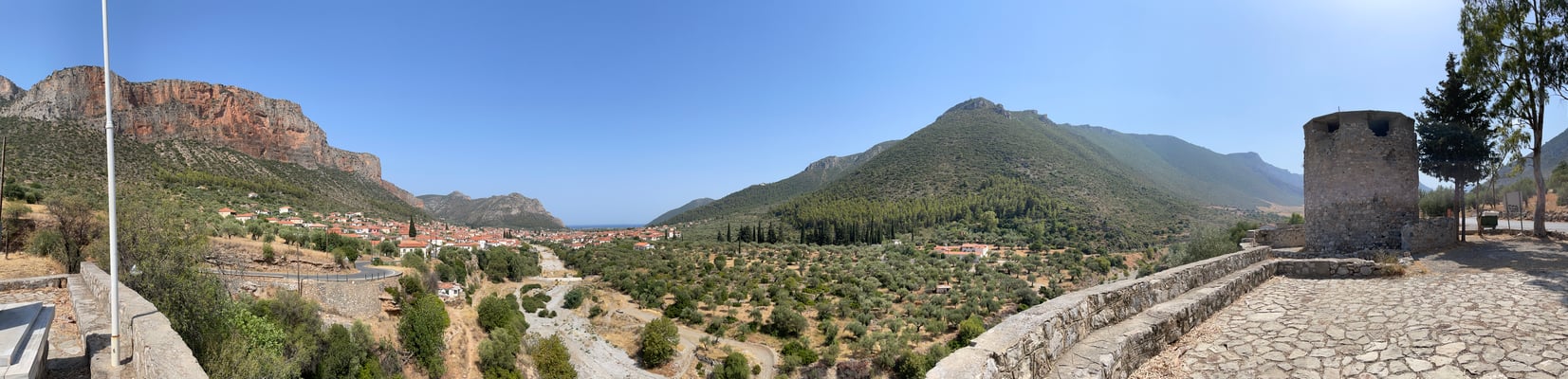 Nach einem griechischen Salat mit Toast klappen wir unser Dach ein und fahren Richtung Leonídio. Diese Stadt liegt prächtig unter einem senkrechten Felsen. Die Gegend ist bekannt für Kletterer. Es gibt über 100 Routen zu klettern.