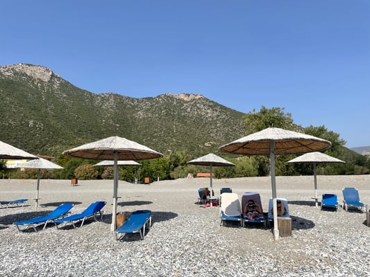 Wir bleiben heute auf dem Camping Semeli und verbringen den Vormittag am Strand. Es ist schön hier, ruhig und sauber und angenehm.