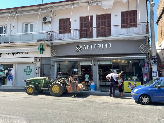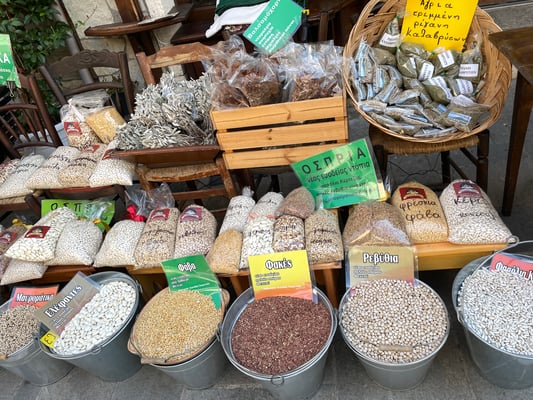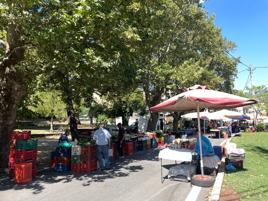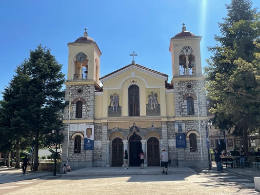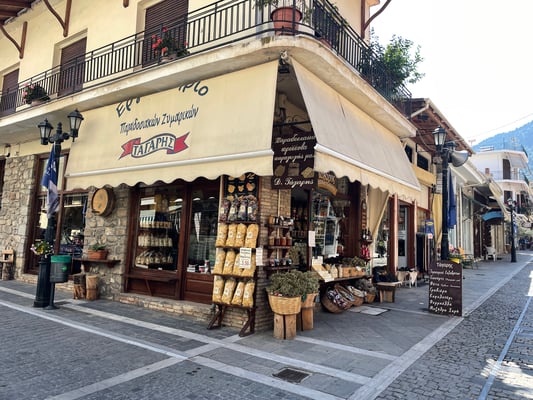 Eine Stunde später stehen wir am kleinen Bahnhof von Kalávrita. Dieser Ort ist bei den Griechen ein beliebtes Ski- und Aprés-Skigebiet. Das schmucke Dörfchen ist voll auf den Tourismus ausgerichtet. Wie schlendern durch die autofreie Hauptstrasse, kehren natürlich ein und kaufen noch ein weiteres Geschenk für Andri.
