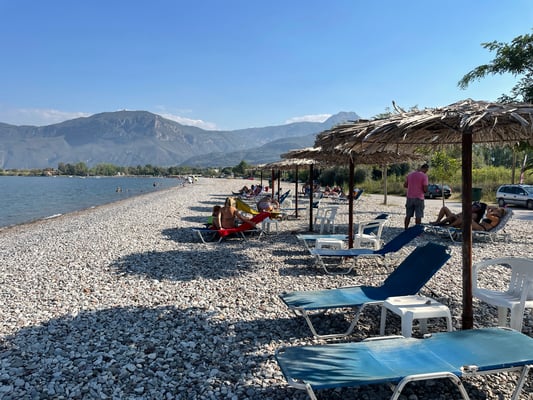 Natürlich gibt es noch ein Eis in Diakoptó für die Kids und den Rest des Tages verbringen wir am Strand des Camping.