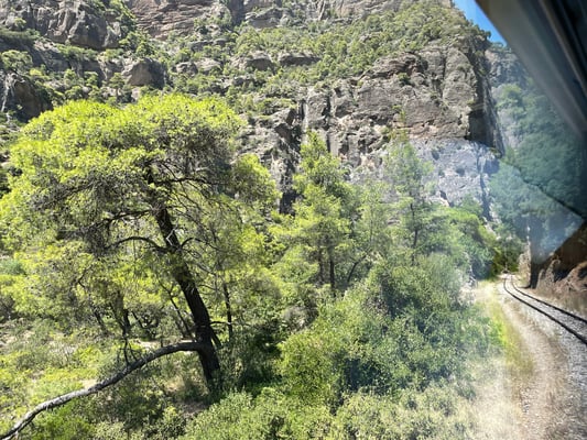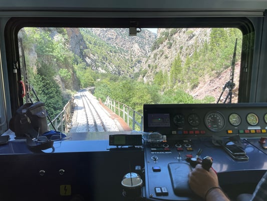 Zweieinhalb Stunden später geht die Fahrt auch schon wieder zurück. Wir haben Poleposition, da die Plätze reserviert sind. Wir sitzen direkt hinter dem Zugführer und haben eine geniale Aussicht direkt auf die Schienen und die Abfahrt ins Tal.