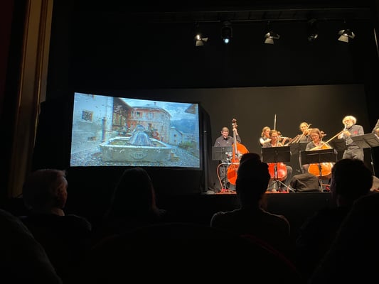 «Tschlin retour» ist ein Kontert auf Knopfdruck Fränzlis und Film. Die Premiere ist gelungen und unser Freund Georg hat in der Regie alle Knöpfe zum richtigen Zeitpunkt gedrückt, sodass die Fränzlis, sowohl auf der Bühne, wie auch auf der Leinwand immer zum richteigen Zeitpunkt ihren Einsatz geben konnten. Bravo, musikalisch abwechslungsreich, witzig und sehr unterhaltsam!
