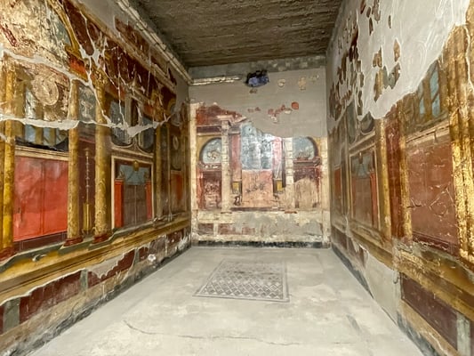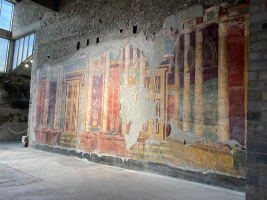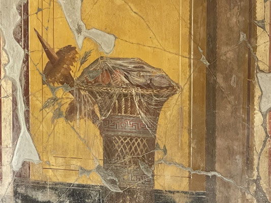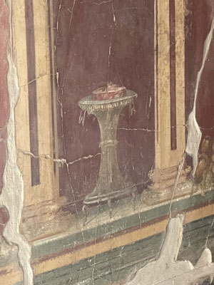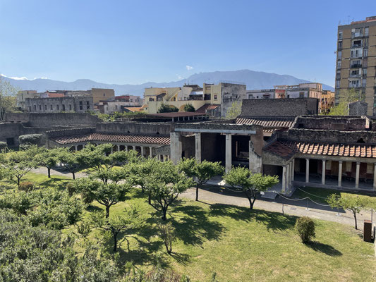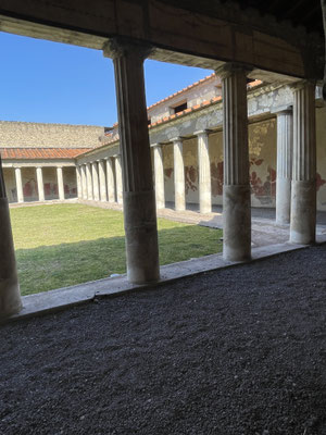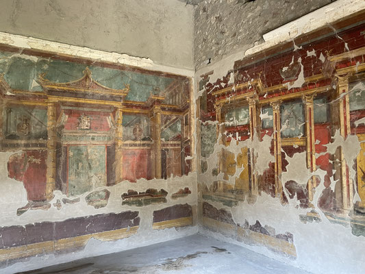 Dafür fahren wir zur 5 km weit entfernten Villa Oplontis. Diese Ausgrabung einer prunkvollen Villa ist eindrücklich, da diese über einen 17x61 Meter grossen Pool verfügte und auch die Wandmalereien noch sehr gut erhalten sind. Man bestaunt echte Kunstwerke. Eine gute Anleitung auf Deutsch bekommt man mit dem Eintritt.