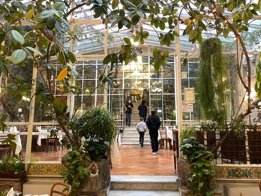 Später essen wir in Restaurant O’Parruccchiano La Favorita. Ein riesiges Lokal mit vielen Sälen und ganz viel Grün. Wir sitzen mitten unter Zitronenbäumen und geniessen feines, lokales Essen.