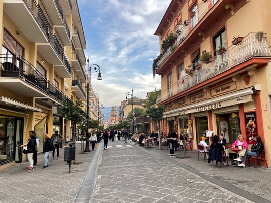 Sie waren die letzten sechs Tage von Salerno an der Amalfiküste bis nach Sorrento gewandert und dass wir alle genau heute in Sorrento sind, ist ein lustiger Zufall.