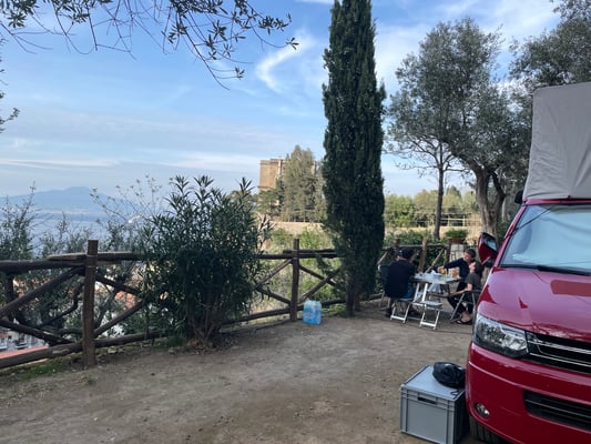 Heute brechen wir unsere Zelte in Pompeji ab, jedoch nicht ohne einen Besuch auf dem Vesuv. Zum Glück erfahren wir von unserem Platznachbarn, dass man nur Onlinetickets kaufen kann. Vor Ort gibt es keine Tickets, auch seien die Billette bereits ausverkauft.