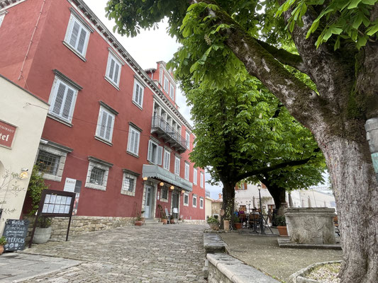 Glockenturm. Im Hotel Kaštel geniessen wir ein typisches Mittagessen mit Trüffel, obschon es 16 Uhr ist.