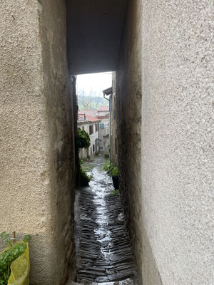 Eine mit alten Steinplatten gepflasterte enge Gasse, die Gradisol führt vorbei an der Kirche der Hl. Jungfrau Maria, den Spezialitätengeschäften (Olivenöl, Trüffel, Wein), durch die alten