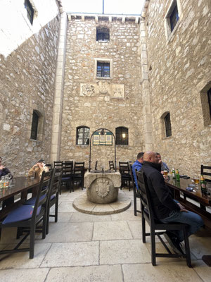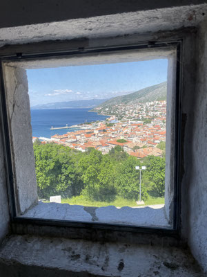 Heute haben wir mehr Glück und die Strasse in Senj ist geteert und der Weg zur Uskokenburg Nehaj offen. Wir fahren hoch und besuchen die Festung. Es ist eine Wohltat dem starken Wind in der Festung zu entkommen. Wir spazieren durch die dreistöckige, spannende Ausstellung über die unbesiegbaren Uskoken. Staunen über die massive Bauweise der Festung, gehen bis auf die Aussichtsplattform mit dem Plumsklo und geniessen ein feines Essen im Burg-Restaurnat.