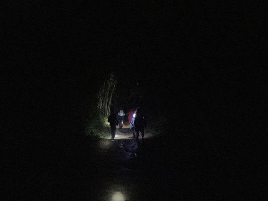 Wir kehren wieder um, und gehen auf dem breiten Weg wieder retour. Wir sind zwar einige Wege wie in der Nacht gegangen, aber das war kaum wiederzuerkennen. In der Nacht waren die Geräusche des