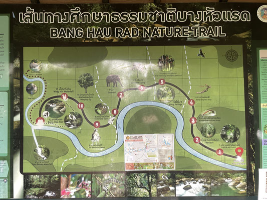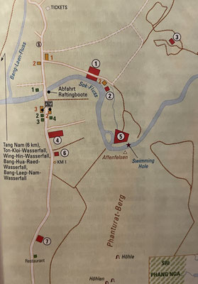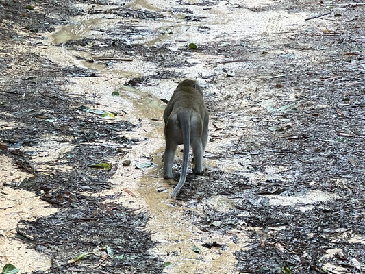 und guten Plätzen vorbei. Natürlich sehen wir immer wieder freche Affen auf den Bäumen turnen. Einer sitzt sogar vor uns auf der Strasse. Wenig weiter erreichen wir die Rangerstation Wang Hua