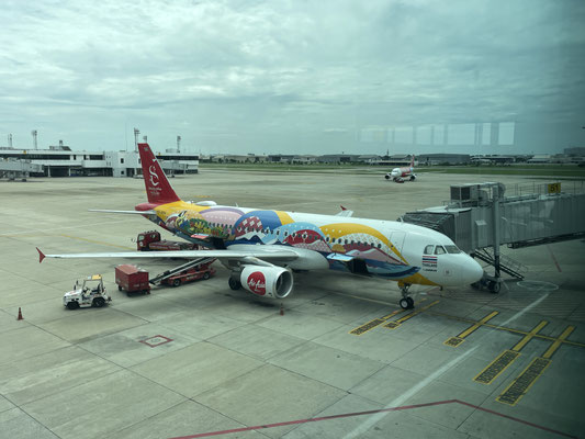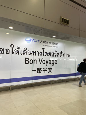 Alles läuft nach Plan und der Flug geht pünktlich. In Bangkok auf dem Flughafen Dong Muean müssen wir unser Gepäck abholen und