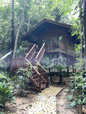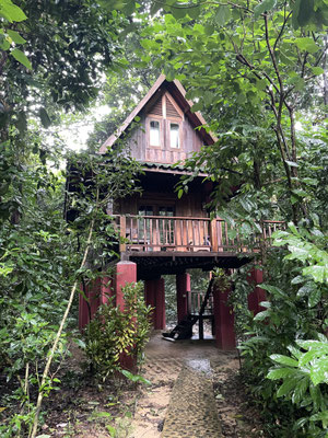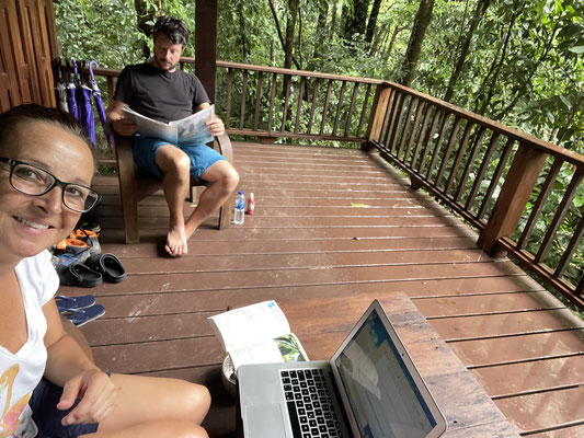 Gegen Mittag sind wir wieder in unserem Our Jungel House Resort, verpflegen uns im Restaurant, duschen und trocknen unsere Sachen und geniessen den Nachmittag mit Lesen und auf der Veranda sitzen. Der Ausblick in den Urwald ist genial!